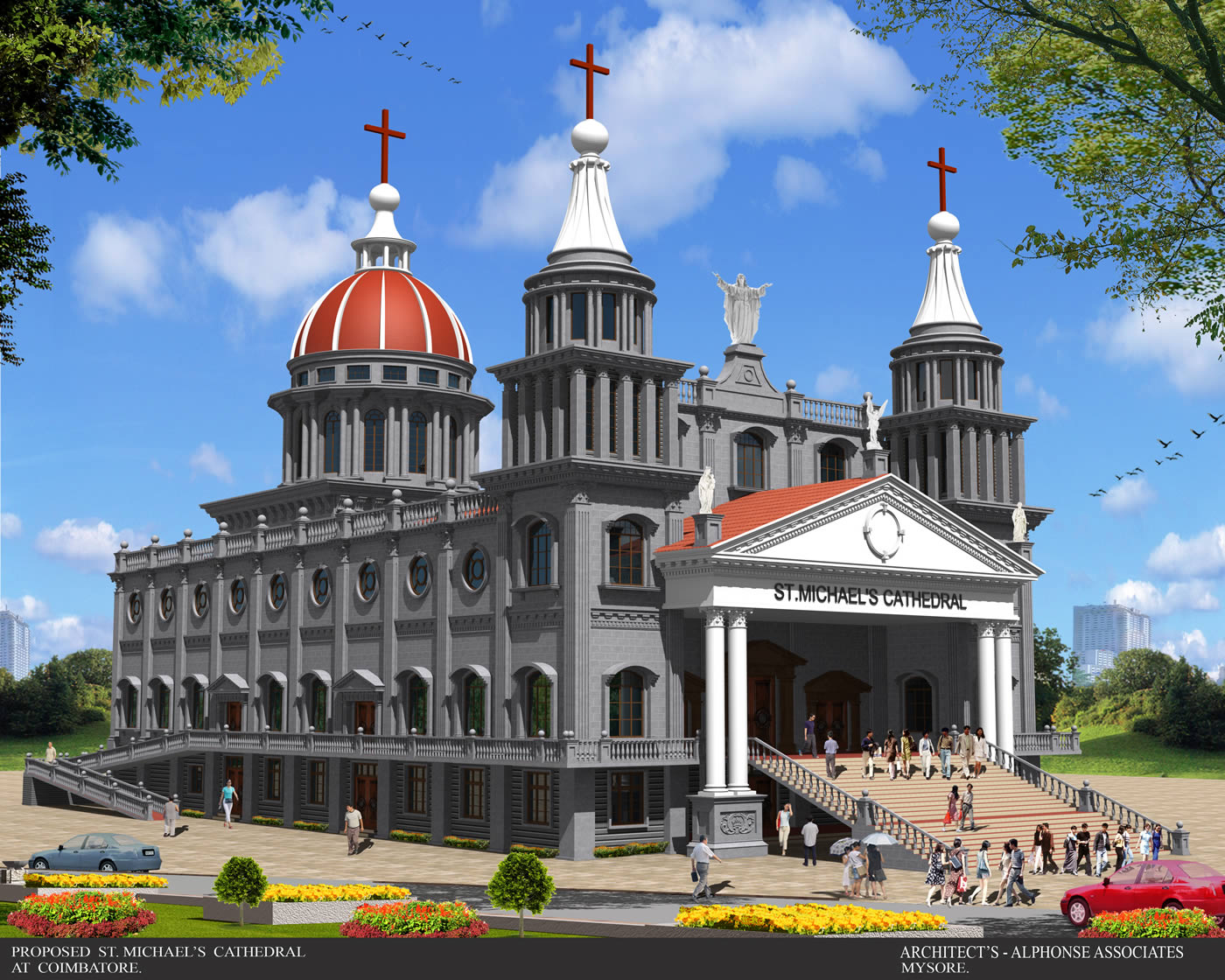 The cathedral stands proudly in the heart of Coimbatore’s bustling Big Bazar Street. This street, known for its vibrant activity, is lined with numerous shops on both sides. Despite the chaos, the cathedral remains a peaceful haven that is easily accessible to many people. The first bishop of Coimbatore, Most Rev. Dr. Marion Bresillac, dedicated the diocese and its cathedral to St. Michael, his patron saint. He envisioned the cathedral to be a replica of St. Peter’s Basilica in Rome. In 1850, the foundation stone for the cathedral was laid according to this design.